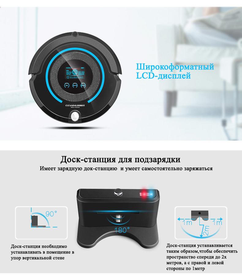 11. Широкоформатный LCD-дисплей для коммуникации и управления вашим роботом-пылесосом. Вы всегда осведомлены о работе робота-пылесоса, о заряде аккумулятора, о том сколько времени длится уборка и т.д.