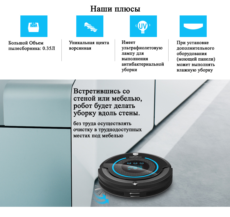 7. Оснащен сенсорами предотвращающими столкновение с мебелью и другими предметами интерьера, что делает его работу более тихой.